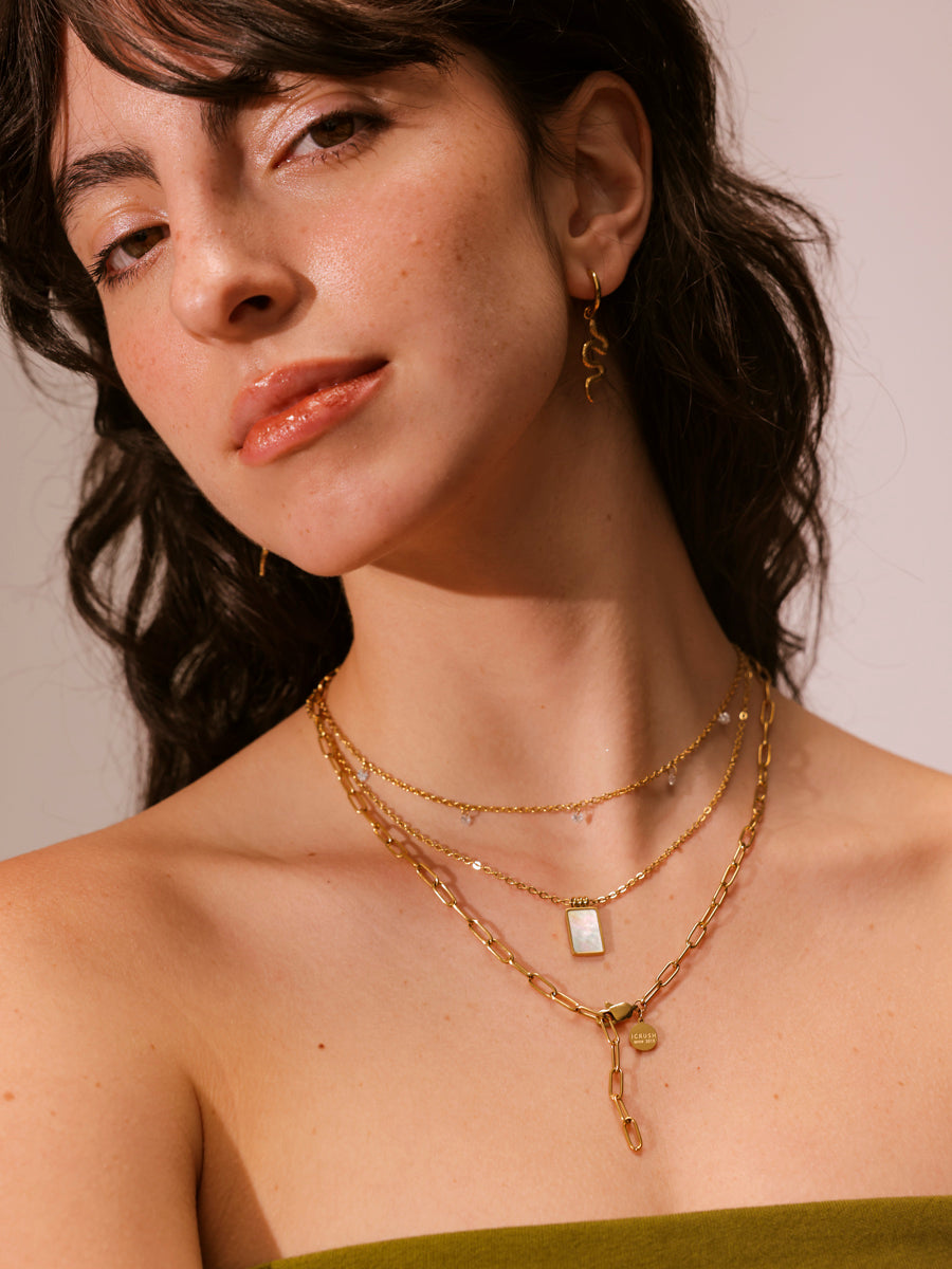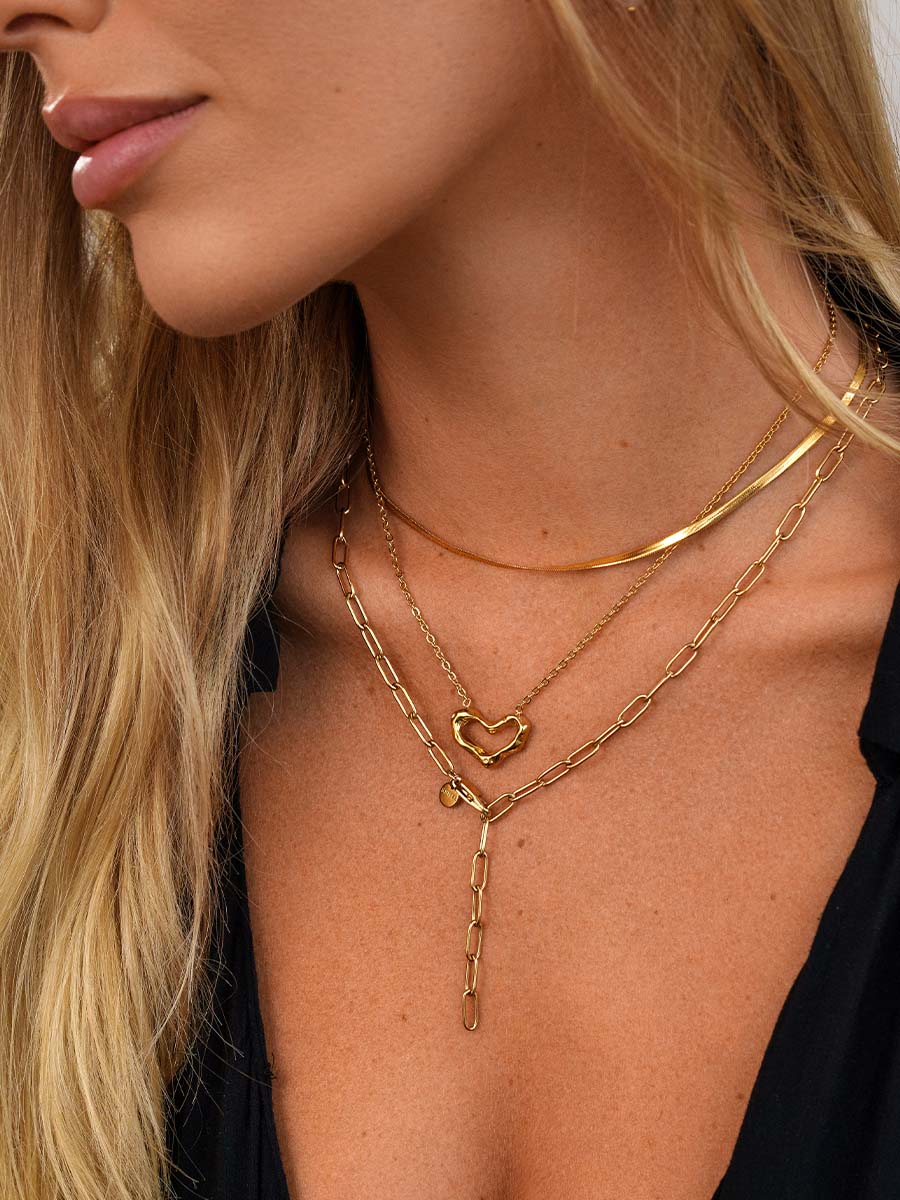With our filigree link chain "consistent" you are right on trend! The Large Link Chain Impresses With Its Classic and Timeless Design. In addition, The Delicate Links of the Chain Have a Classic Shiny Finish. In addition, they don't look too Bulky Because they are airy and thin and lie evenly on the Skin. Compared to the Seamless Chain, The Links Are Slightly Larger and So Rounder. You can't go wrong with this timeless eye-catcher, what with elegant dress or a casual band t-shirt. "Consistent" is therefore individual allally adjustable and can be worn in the classic way as a round necklace or as a stylish y-necklace. That's why this piece of jewelery is so Wonderfully Suited for Modern Layering Looks.Matching the Filigree Link Chain Made of High-Quality Stainless Steel, there is the "consistent" bracelet. “Consistent” is Available in Three Finishes 18k Yellow Gold Plated, Rose Gold Plated and Silver.