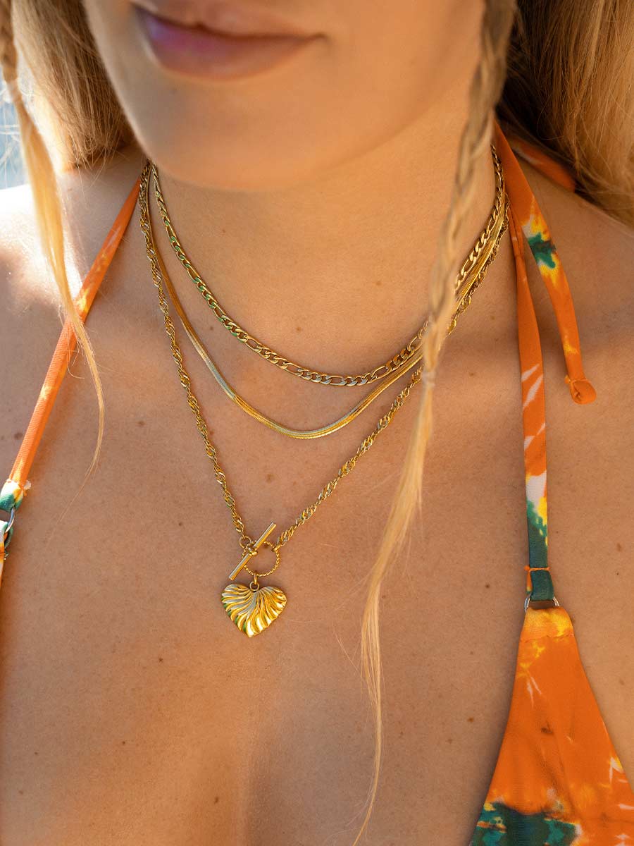 Details Material: stainless steel, 18k yellow gold gold -plated, rose gold gold -plated Total length chain: 45cm (adjustable) Casting type: Figaro tank chain Closure: carabiner Optics: shiny