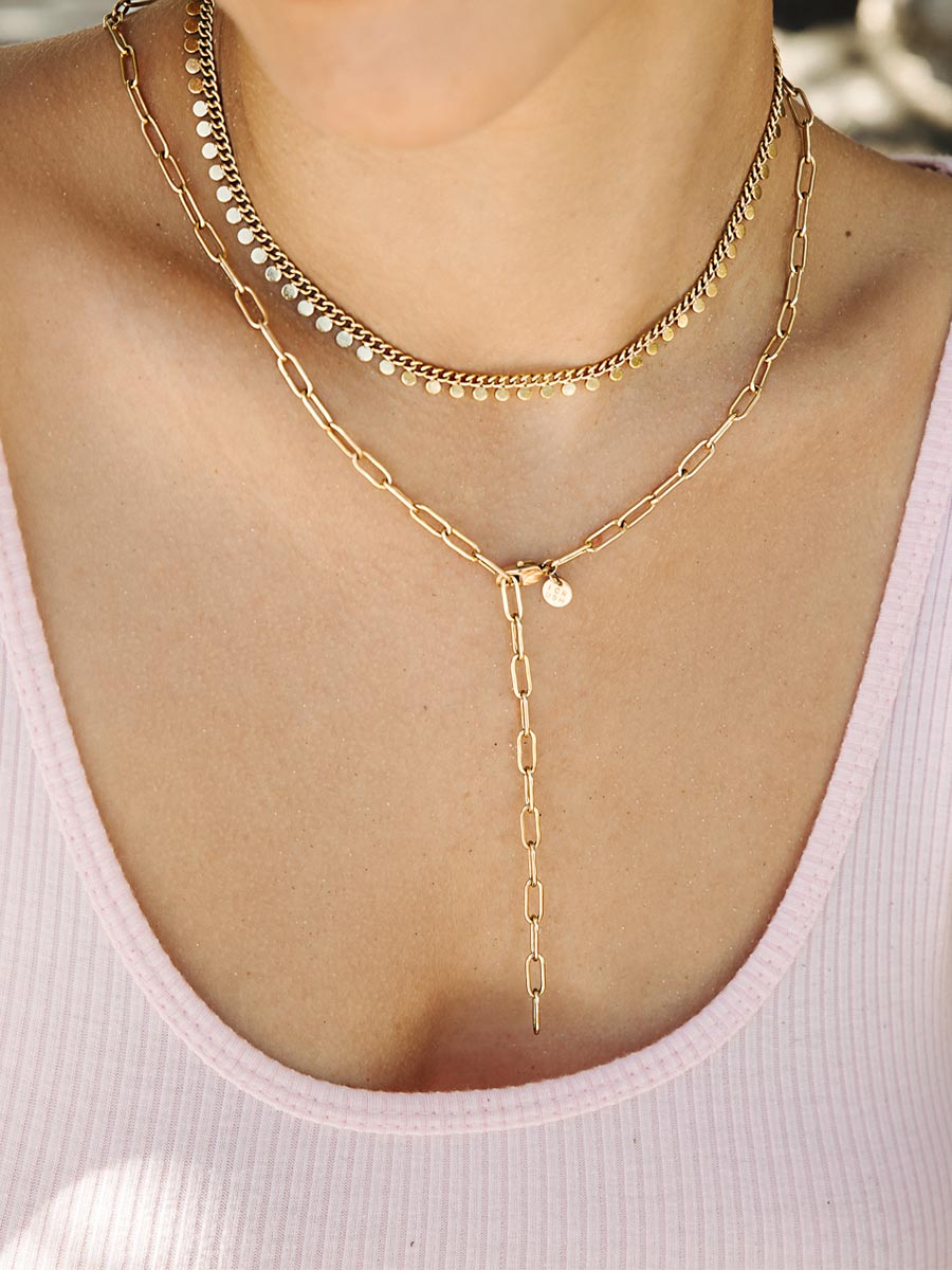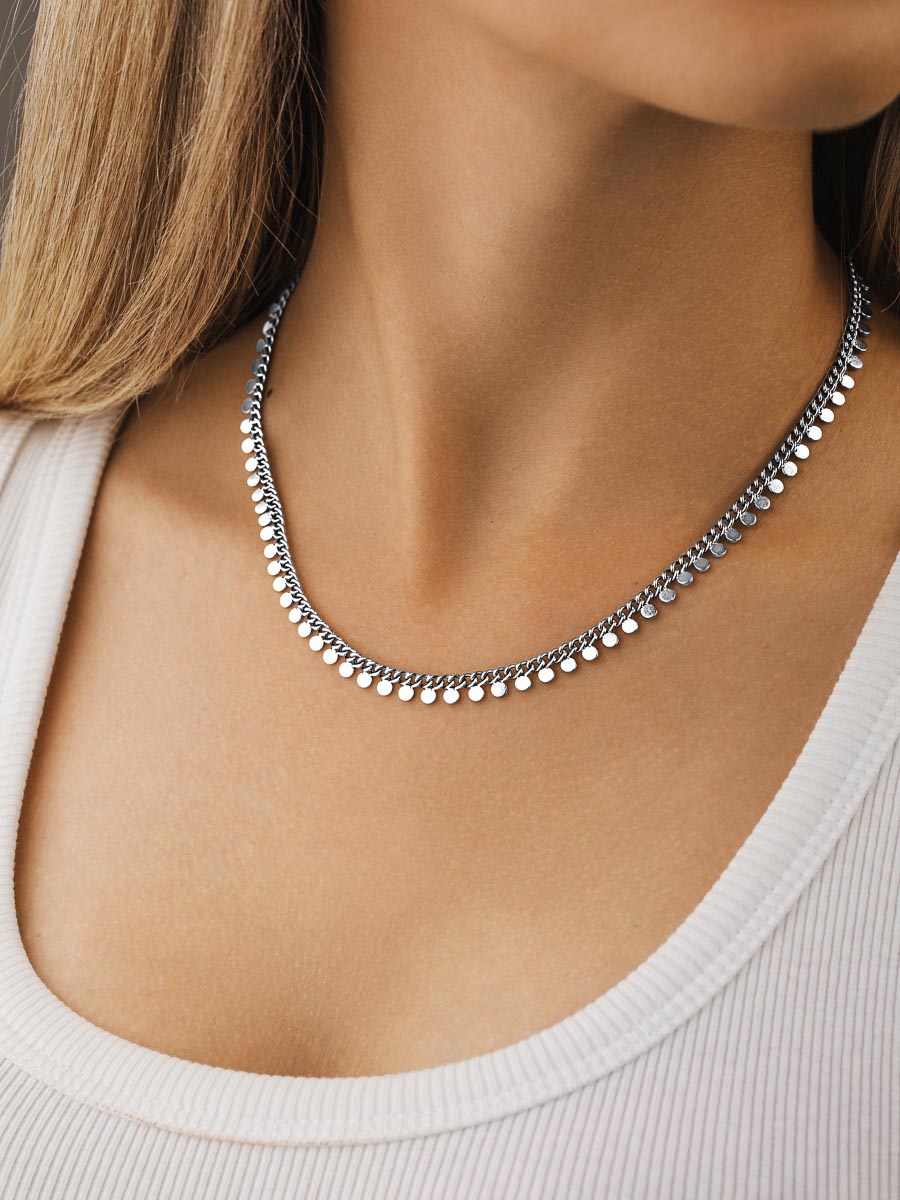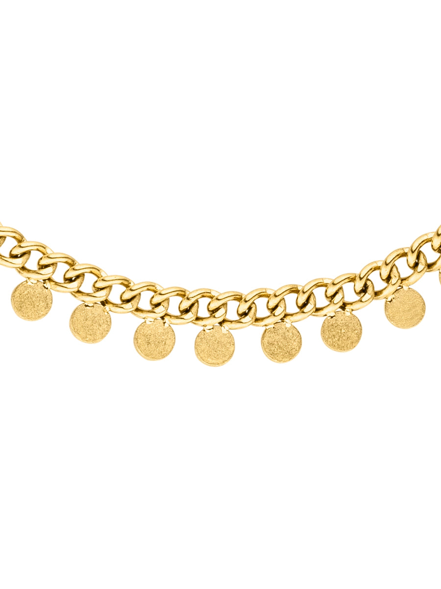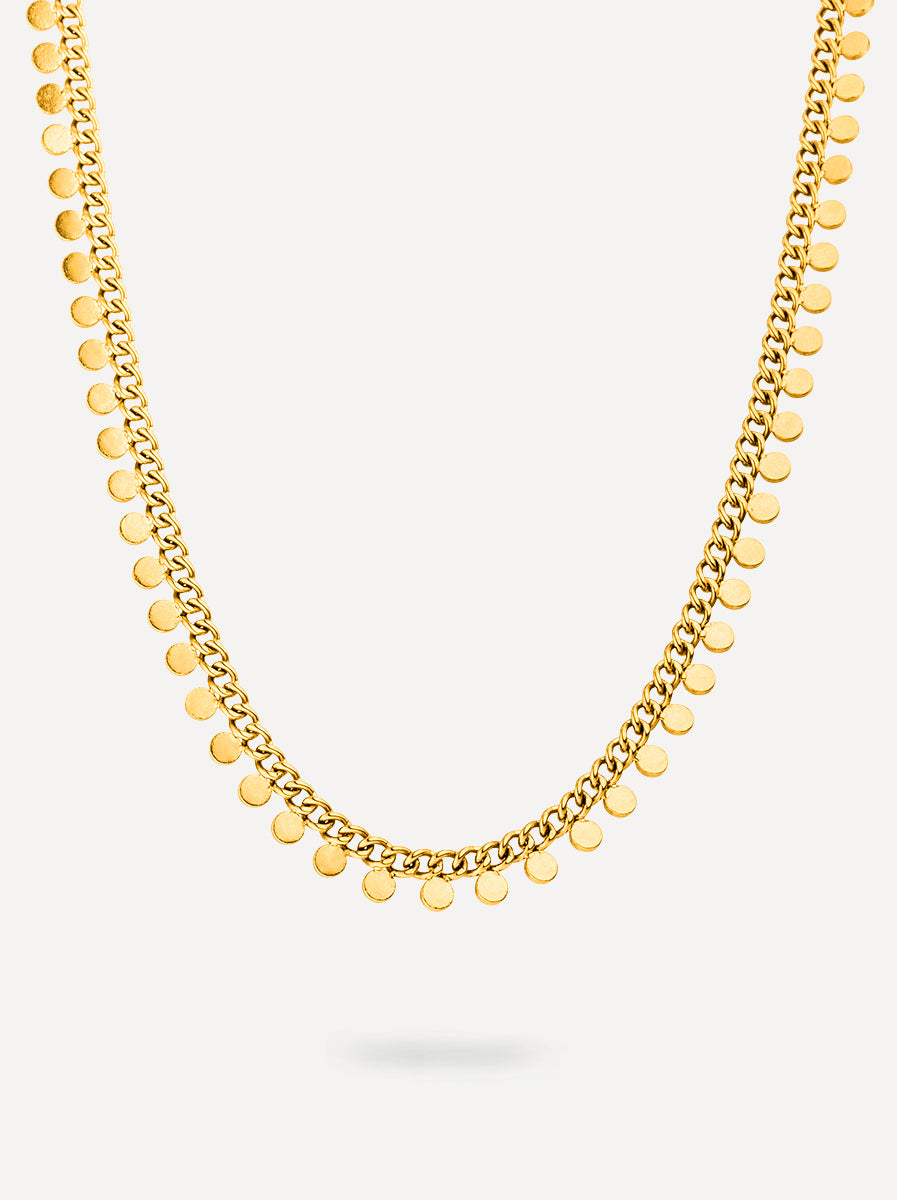 Let yourself be fully enchanted by our sophisticated “patience” chain. She wears small charming coin trailers in a shiny finish that is guaranteed to set beautiful fashionable statements. That is why our fashionable chain “Patience” is the perfect all -rounder for your everyday life, whether worn as a single piece or as an important part of a trendy layering look. Both the numerous coin trailers and the trendy armored chain are made of high -quality stainless steel. In addition, the tender "patience" chain is individually adjustable and available in two versions: 18k yellow gold gold -plated and Silber. Details Material: stainless steel 18 K yellow gold gold -plated Length chain: 36 cm - 38 cm - 41 cm (adjustable) Size trailer: approx. 3 mm Carrier type: tank chain Closure: carabiner